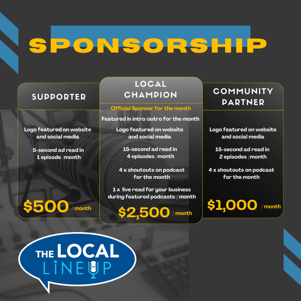 Whether you’re a business owner ready to share your story or a listener eager to learn more about the people behind your favorite local spots, The Local Lineup Podcast is your go-to destination. Tune in, get inspired, and join us in celebrating local businesses—one story at a time.